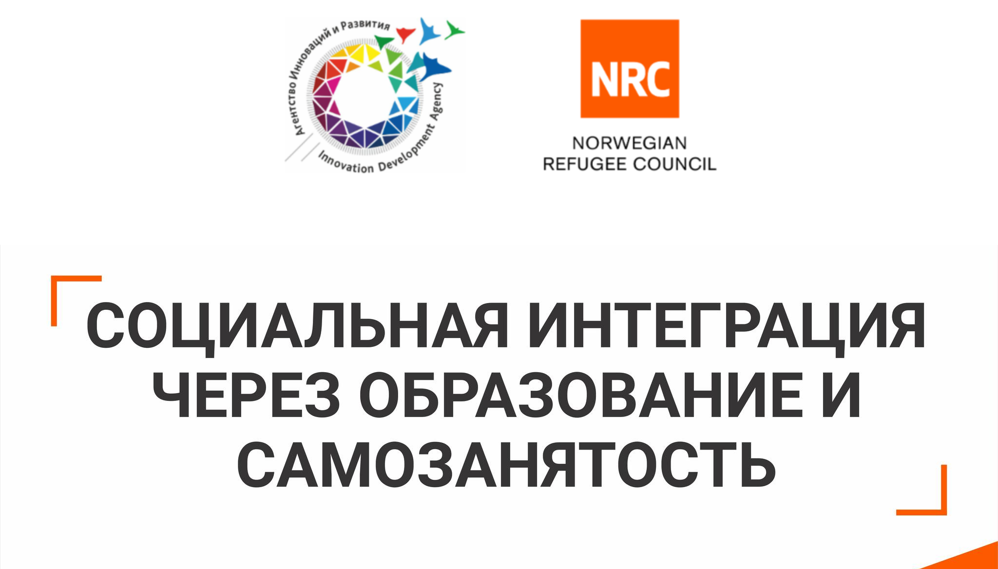 Агентство инноваций и развития объявляет старт проекта «Социальная интеграция через образование и самозанятость», который реализуется при поддержке NRC - Norwegian Refugee Council.